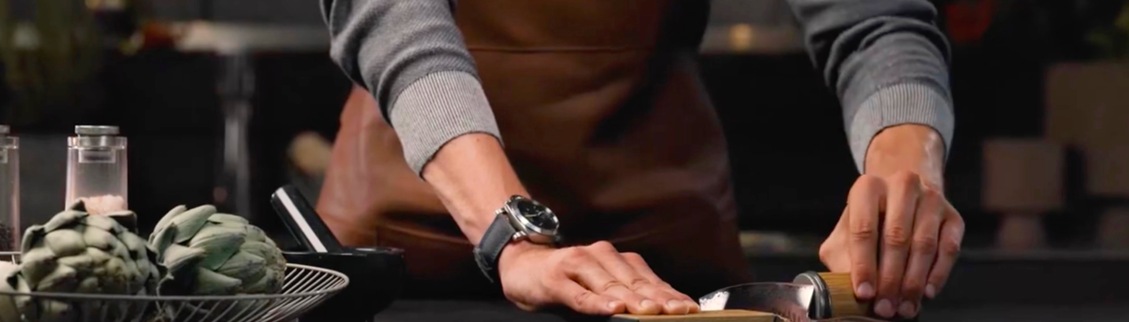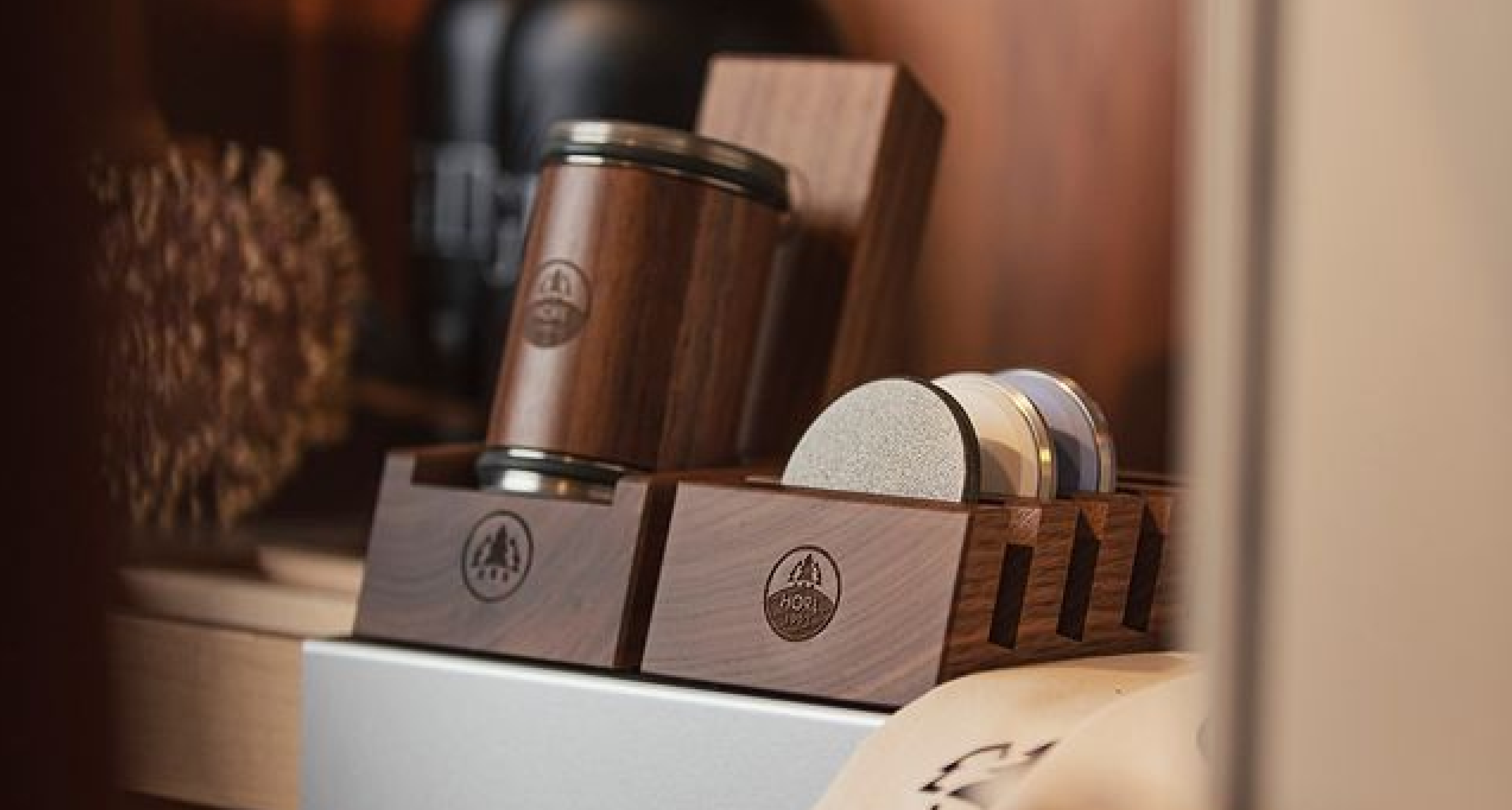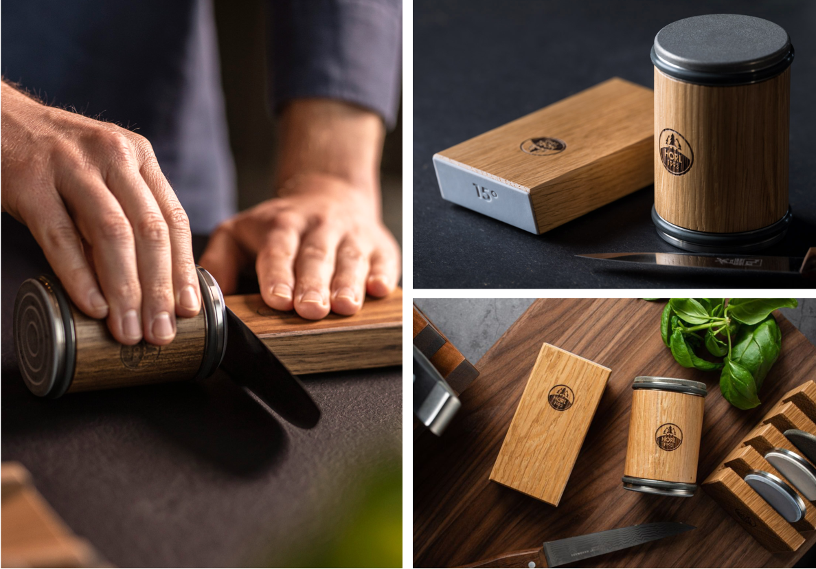 砥⽯でもシャープナーでもない「第3の研ぎ器」として、⽇本上陸。転がして研ぐ驚きのメカニズムで、プロの料理⼈から普通のご家庭まで、幅広く愛⽤されています。